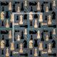 Black And Beige Chessmen Fabric