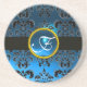 BLACK AND BLUE DAMASK Sapphire Monogram Coaster