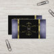 Black and Blue Glitter Gold Decor Border Monogram Business Card