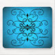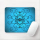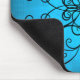 A hearts and swirls design in black on a blue background. Shown here on a pretty mouse pad. Add your name if desired or remove the text.