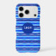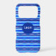 Painted stripes in blue shades, black, and white makes a beautiful iPhone case. Eye-catching, stylish yet simple.