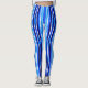Light and dark blue, black, and white vertical painted stripes creates a beautiful and flattering pair of leggings.