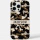 Customise this black and brown camouflage iPhone 16 pro max case with your name in a trendy modern CAP font in black on cream. It's masculine and perfect for your favourite military, hunting, country or outdoorsman!
