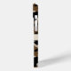 Customize this black and brown camouflage iPhone 15 plus case with your name in a trendy modern CAP font in black on cream. It's masculine and perfect for your favorite military, hunting, country or outdoorsman!