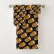 Here is a great bath towel set which features brown and white footballs flying through the air.