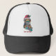 black and brown puppy with stocking christmas trucker hat