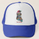 The cute puppy on this customisable christmas hat is looking very festive wearing his red santa hat with a sprig of holly in it. The little brown and black puppy dog is holding his red and green stripy Christmas stocking in his mouth as he eagerly awaits a visit from Santa Claus to fill his stocking with lots of gifts and other doggy treats. He looks very special on this original christmas hat. The cute little puppy design really stands out on this cool hat. You can personalise this christmas hat by adding your own text if you wish to do so. The original puppy illustration is painted in watercolour