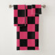Black and Cerise Pink Chequered Pattern Bath Towel Set