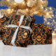 Black and Copper Halloween Skull Damask Foil Wrapping Paper