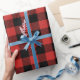 A wrapping paper designed with a black and red buffalo plaid pattern. You can change the red for a different colour in an easy way.