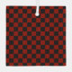 Red and black chequerboard pattern with alternating squares, creating a rhythmic, geometric design. The colours are bold, giving a striking visual contrast.