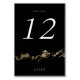This event table number card features an abstract painted mountain in faux gold. The table number is highlighted in a large and elegant font for a sophisticated feel. There is an additional place for a table name. The faux gold foil adds a perfect painterly touch. The dark green background can be customised to match your wedding colours. The front and back of the table number cards repeat the same information so they can be placed in the centre of a table and viewed from either side.