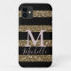 Black and Faux Gold Glitter Stripes with Monogram Case-Mate iPhone Case
