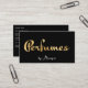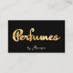 A business card for businesses selling perfume. This card features a black background with the words "Perfume" in faux gold foil text.