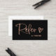Black and Faux Rose Gold Script and Heart | Referral Card