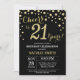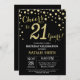 21st Birthday Invitation with Black and Gold Glitter Diamond Background. Gold Confetti. Adult Birthday. Male Men or Women Birthday. For further customisation, please click the "Customise it" button and use our design tool to modify this template.