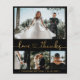 Budget Modern Elegant Gold Heart Font Script Wedding 4 Photo Collage Black Thank You Thin Card. Stylish minimalist wedding card template featuring four (4) grid photo collage on the front and one (1) photo on the reverse side. "Love and thanks" text in a cursive hand written calligraphy cute heart font script with swash tail in gold on black background. Personalise with your name and thank you message. If You need help or matching item, please contact to designer!