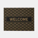 Black and gold art deco fan flower motif welcome door mat. The design features a repeating black and gold fan flower pattern. 1920s Gatsby style motif.