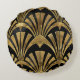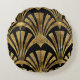 Black and gold art deco luxury pattern round cushion