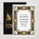 Celebrate in timeless 1920s glamour with this black and gold Art Deco wedding invitation featuring bold geometric framing and elegant vintage-inspired typography. The striking gold detailing against a deep black backdrop creates a luxurious Great Gatsby aesthetic perfect for modern, formal, and black-tie weddings.
