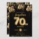 Black and Gold Balloons Confetti 70th Birthday Invitation