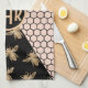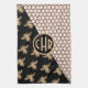 Black and Gold Bees and Pink Honeycomb Monogram Tea Towel
