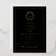 Black and gold botanical crest monogram wedding