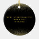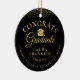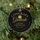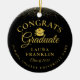An elegant graduation ornament keepsake gift featuring your grad's details and special message on the reverse set in chic typography on a black and gold glitter background. Designed by Thisisnotme©