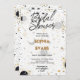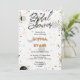 The text on the invitation is beautifully presented in a mix of simple print, decorative print, and elaborate script, adding a touch of sophistication and whimsy. The colours of the text, in black and gold, harmonise perfectly with the celestial theme, creating a stunning visual contrast that's sure to captivate the guests.