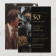 Black And Gold Chic Floral 50th Anniversary Photo Invitation