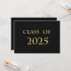 Class of 2025 Graduation Party Invitation with black texture for the background and gold for the name. The back is a black texture with gold lettering for the graduation party invitations.