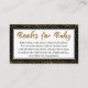 Here is a sophisticated take on the popular baby shower book request trend. This design has been embellished with faux gold confetti, and faux gold glitter metallic header text. Behind a white badge I've set the background as black; this is editable and can be changed to any colour you prefer. Over the background colour I've added graphics that simulates gold glitter confetti. // On the front, a bold header reads "Books for Baby" in a fat, elegant script font, which I've added as a graphic overlay. Another such graphic, placed on the back, reads "Thank You for Helping Build Our Baby's Library". The text has been embellished in the gold glitter graphic treatment. Then you have text boxes set up for my editable message on each side. They have been filled with place holder type that you may keep or change to your own preferred wording, font and colour. The internet is lush with possible wording and there are many popular poems depicting the purpose of the book request which replaces expensive cards while helping point the new baby towards an appreciation of reading. I decided to write a quirky bit of verse for the front and a friendly, explanatory message for the back. Use my original or replace these with one of many other options as you see fit. // 88 // Designed by Melody Watson for Paper Muserie.