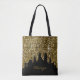 Black and Gold Confetti Glitter Chicago Skyline Tote Bag