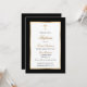Elegant black and gold baptism invitations featuring a gold cross inside a black and gold foil frame. The gold foil is only simulated in the artwork.