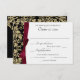 Elegant gold and black damask wedding invitation response card with a burgundy printed bow. Change text and paper style as preferred. All parts of this invitation are printed. There is no actual ribbon attached. Please contact this designer for additional style and colour options.