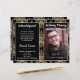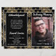 An elegant combination of black and gold with a damask pattern background. Easy to personalise with a sentiment, funeral program schedule and a favourite photo. This is meant to be folded in half.