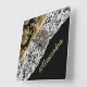 Elegant black and gold vintage damask filigree pattern and a pretty feminine old white lace and an antique diamond crystal rhinestone gemstone jewel on a customisable coloured background. Personalised with your monogram initials to create a unique monogrammed old fashioned lacy feminine gift. Easily customise the background from a range of custom colours. PLEASE NOTE the golden colour is not metallic.