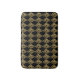 Black background with repeating gold doodles pattern creates a modern abstract design.