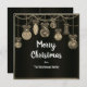 Featuring a striking, deep black background, this card provides the perfect canvas for a luxurious display of holiday cheer. Delicate gold lines depict a cascade of classic Christmas baubles and festive decorations, shimmering as if catching the light. The rich gold accents offer a touch of glamour and timeless class, making this design both modern and traditionally festive.
