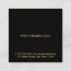 featuring black monogram in gold circle element with business information in gold professional font style on black background.