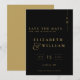 This minimalist, elegant, black and gold monogram wedding save the date can be personalised with your information in modern typography. Designed by Thisisnotme©
