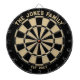 Black and gold dart board with two custom text areas. Great wedding gift!