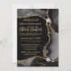 Black and Gold Faux Glitter Agate Sweet 16 Invitation