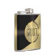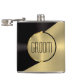 The flask itself is fine. It’s a cheap flask, obviously bought in bulk, however am prepared to overlook that. Given that it is a personalized item, I would have liked to have seen gift boxing instead of the generic packaging. Terrible printing, and/or quality. It’s a cheap, tacky vinyl. It is not cut straight and is also applied in a way that it is overhanging the bottom, causing the glue to catch on items and it will eventually roll and tear, damaging the wrap.