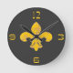 Black and Gold Fleur De Lis Round Clock