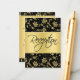 This luxurious black and gold glitter LOOK floral reception enclosure card matches the wedding invitation and other items shown below. Some of the papers may alter the colour of the design, so use caution if you choose any of the other paper types. ALSO, if you re-size the card, or if you change fonts, or the size of the font, some of the design and/or text may get cut-off. Everything will print as you see it on your monitor. I will not see your card, and Zazzle will NOT correct anything (typos, mis-alignment etc.). The back text and paper is all customisable. If you need help with this card, please email me BEFORE you place your order. If you require any other matching items, please email your request to niteowlstudio@gmail.com