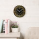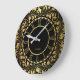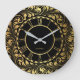 Black And Gold Floral Leaves Elegant Pattern Large Clock