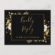 An elegant black and gold watercolor floral RSVP card in chic typography. The reverse features your details and a fun guest song request. Designed by Thisisnotme©