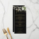 This elegant black and gold floral greenery string lights wedding menu can be personalised with your information in chic typography with your monogram initials on the reverse. Designed by Thisisnotme©