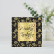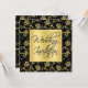 This sophisticated black with gold FAUX glitter (printed on) flowers wedding invitation would be perfect for a black and gold themed wedding. Please note that the 4.25 X 5.5 inch RSVP cards and RSVP postcards do not fit inside this invitation, so you would need to put any response request information on the invitation itself or contact me to make you the small 3.5 X 5 inch reply card. Some of the papers will alter the colour of the design. I would NOT use the gold or silver metallic papers, as they may darken the design without adding any extra sparkle to it than what you would get with the metallic ice or champagne papers. ALSO, if you re-size the invitation, or if you change fonts, or the size of the font, some of the design and/or text may get cut-off. Everything will print as you see it on your monitor. I will not see your invitation, and Zazzle will NOT correct anything (typos, mis-alignment etc.). The back text and paper is all customisable. If you need help with this invitation, please email me BEFORE you place your order. If you require any other matching items, please email your request to niteowlstudio@gmail.com.
